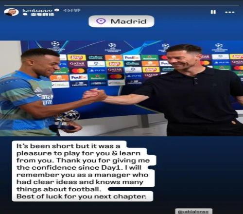 在众叛亲离的处境中,姆巴佩几乎是阿隆索唯一的坚定支持者。阿隆索下课后姆巴佩也是第一个发了社媒,表达了对阿隆索的认可、及对他离任的遗憾。阿隆索给予了这位超级巨星绝对的战术核心地位,姆巴佩应该感恩,他也配的上这份认可。然而,这份信任却在本赛季演变成一种颇具讽刺意味的“黑色幽默”。